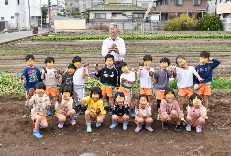 開明かしの木こども園とかしの木こども園の5歳児が参加しました。農家の方に、掘り方のコツを教えてもらって、いざ!